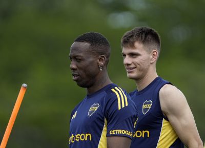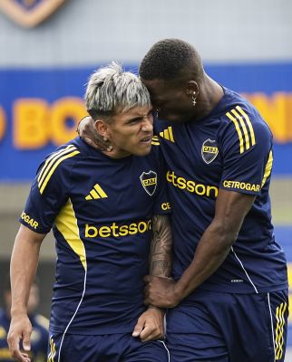 Exequiel Zeballos y Miguel Merentiel - Entrenamiento de Boca Juniors - Centro de Entrenamiento de Boca Juniors en Ezeiza - 12 de...