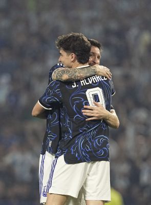 Jualian Alvarez y Lionel Messi - Argentina vs Zambia - Partido amistoso preparatorio para el Mundial 2026 - 31 de marzo de 2026 - Estadio...