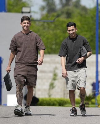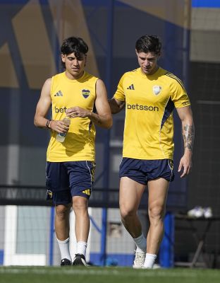 Tomas Belmonte y Alan Velasco - Entrenamiento de Boca Juniors - 11 de noviembre de 2025 - Centro de Entrenamiento de Boca Juniors en...
