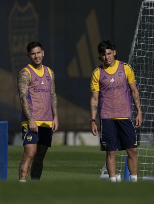 Leandro Paredes y Exequiel Zeballos - Entrenamiento vespertino de Boca Juniors - Centro de Entrenamiento de Boca Juniors en Ezeiza - 12...