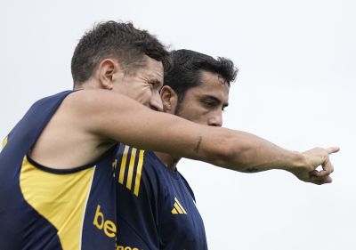 Ander Herrera y Nicolas Figal - Entrenamiento de Boca Juniors - Centro de Entrenamiento de Boca Juniors en Ezeiza - 30 de marzo de 2026...