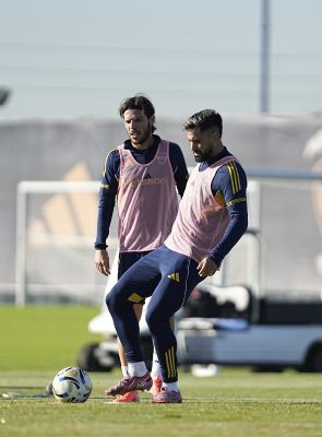 Leandro Paredes y Angel Romero - Entrenamiento de Boca Juniors - Centro de Entrenamiento de Boca Juniors en Ezeiza - 26 de abril de 2026...