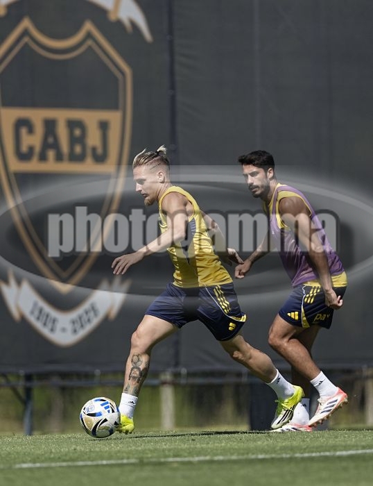 Santiago Ascacibar y Nicolas Figal - Entrenamiento de Boca Juniors - Centro de Entrenamiento de Boca Juniors en Ezeiza - 13 de febrero de 2026 - Foto: Javier Garcia Martino - Prensa CABJ -