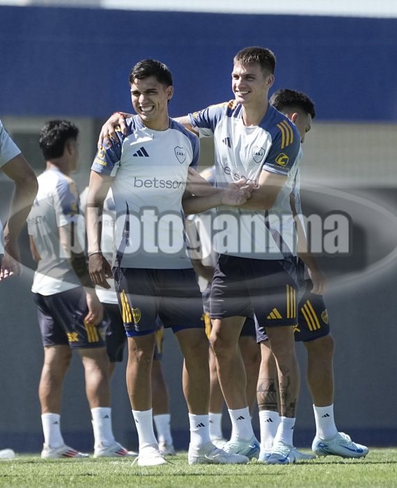 Exequiel Zeballos y Kevin Zenon - Entrenamiento de Boca Juniors - Centro de Entrenamiento de Boca Juniors en Ezeiza - 13 de febrero de 2025 - Foto: Javier Garcia Martino - Prensa CABJ