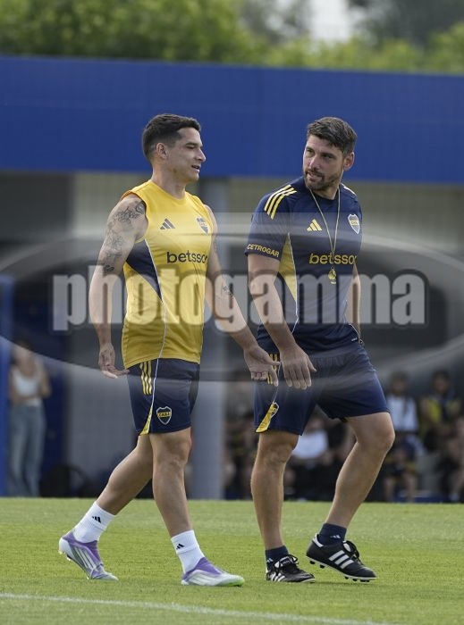 Lautaro Blanco y Adrian Geronimo - Entrenamiento de Boca Juniors - Centro de Entrenamiento de Boca Juniors en Ezeiza - 5 de diciembre de 2025 - Foto: Javier Garcia Martino - Prensa CABJ - javier garcia martino @javierphotogamma