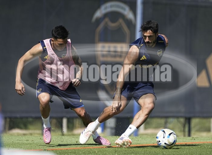 Alan Velasco y Nicolas Figal - Entrenamiento de Boca Juniors - Centro de Entrenamiento de Boca Juniors en Ezeiza - 21 de enero de 2026 - Foto: Javier Garcia Martino - Prensa CABJ JAVIER GARCIA MARTINO garcia martino javier