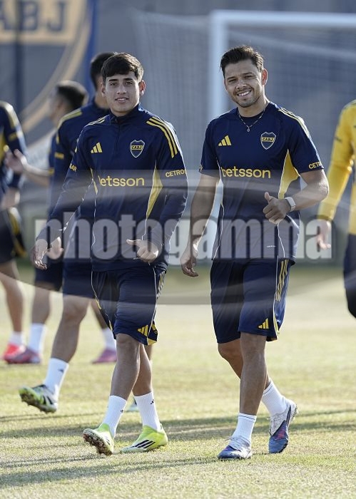 Tomas Aranda y Angel Romero - Entrenamiento vespertino de Boca Juniors - Centro de Entrenamiento de Boca Juniors en Ezeiza - 17 de abril de 2026 - Foto: Javier Garcia Martino - Prensa CABJ -