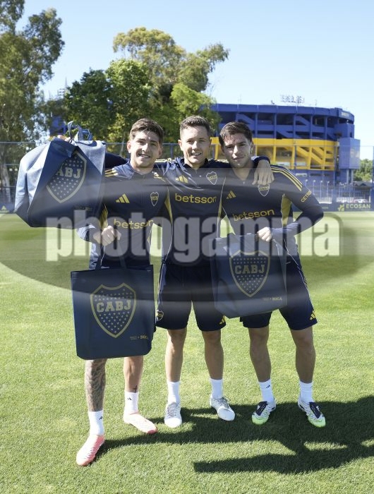 Tomas Belmonte, Ander Herrera y Marco Pellegrino - Entrenamiento de Boca Juniors - Complejo Pedro Pompilio - Casa Amarilla - 26 de octubre de 2025 - Foto: Javier GarcĂ­a Martino - Prensa CABJ -