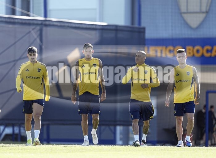 Williams Alarcon, Lautaro Di Lollo, Ayrton Costa y Malcom Braida - Entrenamiento de Boca Juniors - Centro de Entrenamiento de Boca Juniors en Ezeiza - 9 de marzo de 2026 - Foto: Javier Garcia Martino - Prensa CABJ -