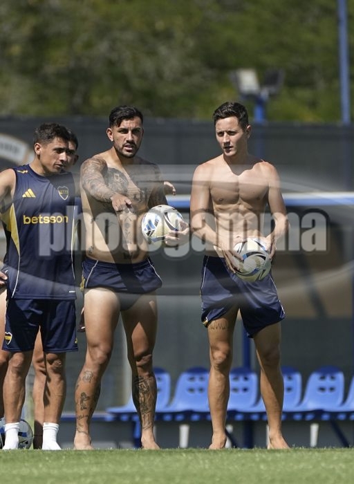 Miguel Merentiel, Leandro Paredes y Ander Herrera - Entrenamiento de Boca Juniors - Centro de Entrenamiento de Boca Juniors en Ezeiza - 26 de enero de 2026 - Foto: Javier Garcia Martino - Prensa CABJ JAVIER GARCIA MARTINO garcia martino javier