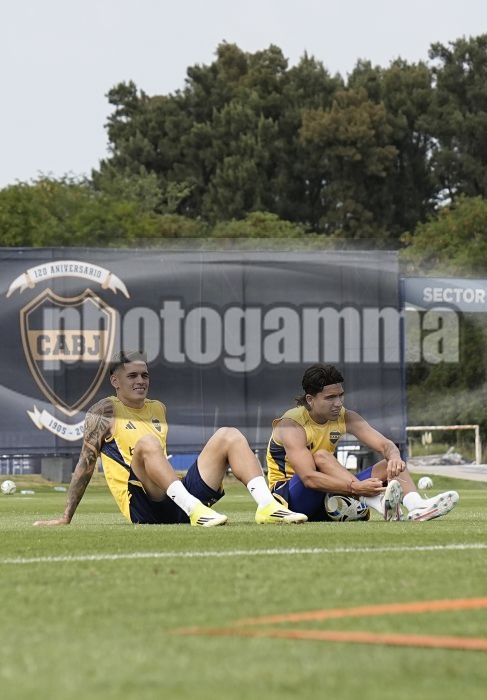 Brian Aguirre y Exequiel Zeballos - Entrenamiento de Boca Juniors - Centro de Entrenamiento de Boca Juniors en Ezeiza - 24 de enero de 2026 - Foto: Javier Garcia Martino - Prensa CABJ - javier garcia martino @javierphotogamma