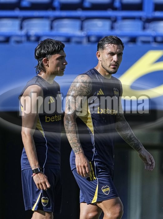 Exequiel Zeballos y Leandro Paredes - Entrenamiento de Boca Juniors - 13 de noviembre de 2025 - Estadio Alberto J. Armando - La Bombonera - Foto: Javier Garcia Martino - Prensa CABJ -