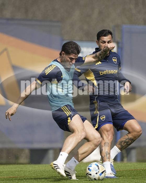Marco Pellegrino y Leandro Paredes - Entrenamiento de Boca Juniors - Centro de Entrenamiento de Boca Juniors en Ezeiza - 17 de septiembre de 2025 - Foto: Javier GarcĂ­a Martin0 - Prensa CABJ - JAVIER GARCIA MARTINO garcia martino javier