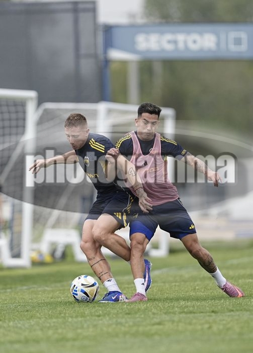 Juan Barinaga y Alan Velasco - Entrenamiento de Boca Juniors - Centro de Entrenamiento de Boca Juniors en Ezeiza - 30 de marzo de 2026 -Foto: Javier Garcia Martino - Prensa CABJ