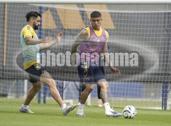 Ayrton Costa y Milton Gimenez - Entrenamiento de Boca Juniors - Centro de Entrenamiento de Boca Juniors en Ezeiza - 22 de octubre de 2025 - Foto: Javier GarcĂ­a Martino - Prensa CABJ - JAVIER GARCIA MARTINO garcia martino javier