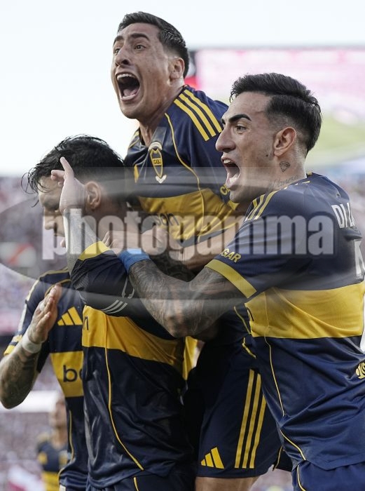 Festejo de Leandro Paredes, Miguel Merentiel y Lautaro Di Lollo - River Plate vs Boca Juniors - Torneo Apertura 2026 - Fecha 15 de 1619 de abril de 2026 - Estadio Mas Monumental de River Plate - Foto: Javier Garcia Martino - Prensa CABJ