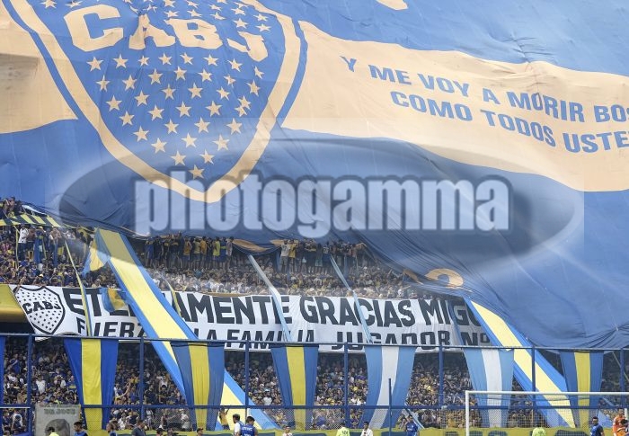 Trapos - Banderas - Hinchada - Boca Juniors vs Millonarios - Copa Miguel Angel Russo - 14 de enero de 2026 - Partido Amistoso - Estadio Alberto J. Armando - La Bombonera - Foto: Javier Garcia Martino - Prensa CABJ -