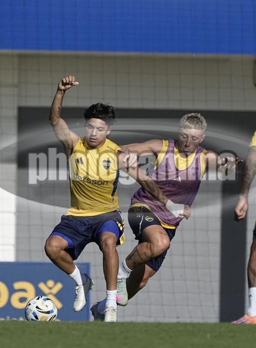 Exequiel Zeballos y Juan Barinaga - Entrenamiento vespertino de Boca Juniors - Centro de Entrenamiento de Boca Juniors en Ezeiza - 5 de enero de 2026 - Dia 4 - Foto: Javier Garcia Martino - Prensa CABJ - javier garcia martino @javierphotogamma