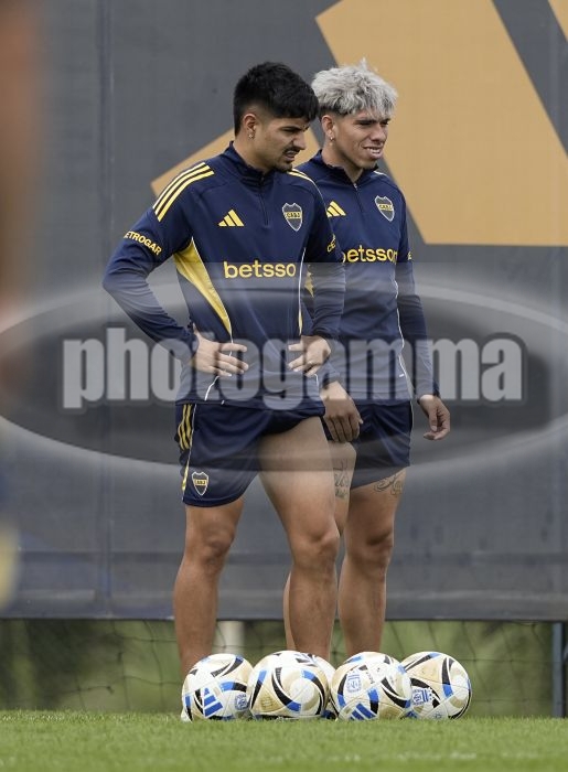 Williams Alarcon y Carlos Palacios - Entrenamiento de Boca Juniors - Centro de Entrenamiento de Boca Juniors en Ezeiza - 12 de noviembre de 2025 - Foto: Javier Garcia Martino - Prensa CABJ -