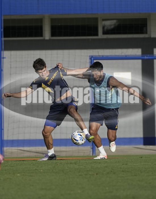 Santiago Dalmasso y Nicolas Figal - Entrenamiento vespertino de Boca Juniors - Centro de Entrenamiento de Boca Juniors en Ezeiza - 3 de enero de 2026 - Foto: Javier Garcia Martino - Prensa CABJ -