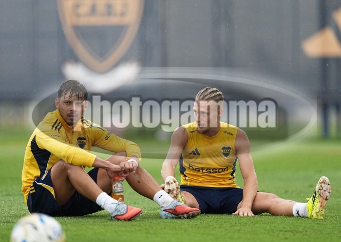 Angel Romero y Santiago Ascacibar - Entrenamiento vespertino de Boca Juniors - Centro de Entrenamiento de Boca Juniors en Ezeiza - 4 de febrero de 2026 - Foto: Javier Garcia Martino - Prensa CABJ -