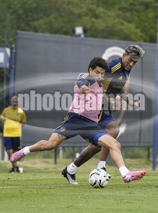 Lucas Blondel y Lautaro Di Lollo - Entrenamiento vespertino de Boca Juniors - Centro de Entrenamiento de Boca Juniors en Ezeiza - Pre temporada 2026 - Dia 8 - 9 de enero de 2026 - Foto: Javier Garcia Martino - Prensa CABJ - JAVIER GARCIA MARTINO garcia martino javier