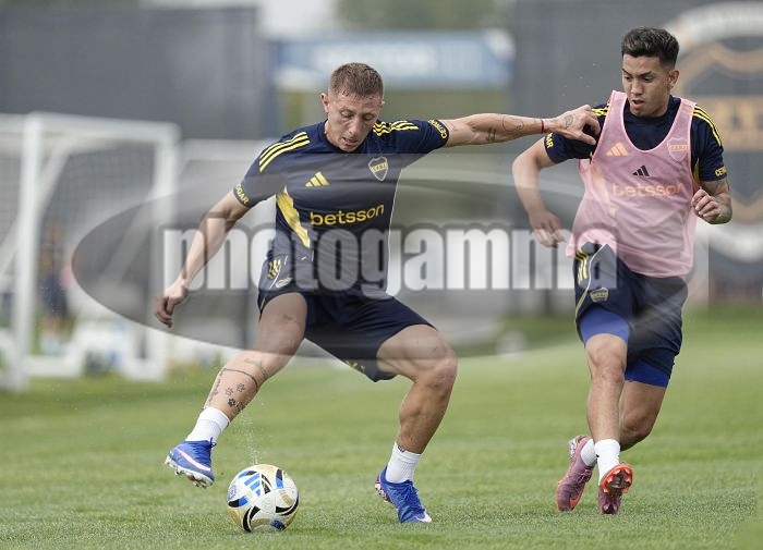 Juan Barinaga y Alan Velasco - Entrenamiento de Boca Juniors - Centro de Entrenamiento de Boca Juniors en Ezeiza - 30 de marzo de 2026 -Foto: Javier Garcia Martino - Prensa CABJ