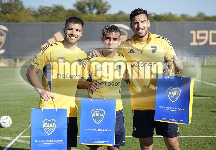 Milton Delgado, Leandro Paredes y Marcelo Weigandt - Entrenamiento de Boca Juniors - Centro de Entrenamiento de Boca Juniors en Ezeiza - 18 de abril de 2026 - Foto: Javier Garcia Martino - Prensa CABJ -