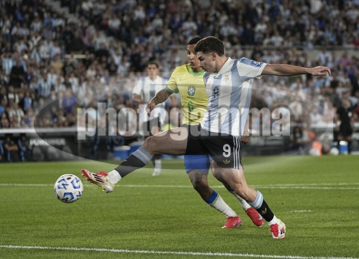 Gol de Julian Alvarez de Argentina - Argentina vs Brasil - Eliminatorias Sudamericanas de Futbol para el Mundial de Norteamericanos 2026 - 25 de marzo de 2025 - Estadio: Mas Monumental - Buenos Aires - Argentina - Foto: Javier Garcia Martino - Prensa CABJ
