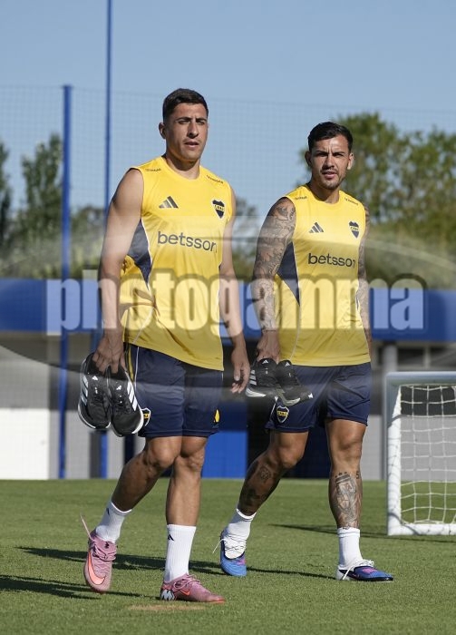 Miguel Merentiel y Leandro Paredes - Entrenamiento vespertino de Boca Juniors - Centro de Entrenamiento de Boca Juniors en Ezeiza - 5 de enero de 2026 - Dia 4 - Foto: Javier Garcia Martino - Prensa CABJ - javier garcia martino @javierphotogamma