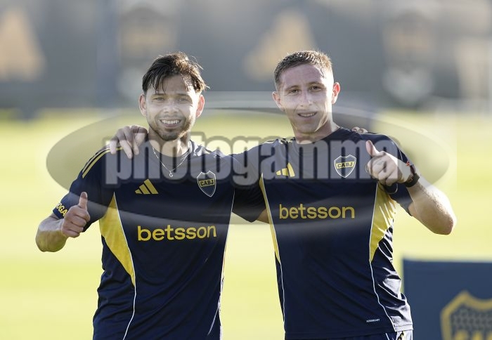 Angel Romero y Juan Barinaga - Entrenamiento vespertino de Boca Juniors - Centro de Entrenamiento de Boca Juniors en Ezeiza - 3 de marzo de 2026 - Foto: Javier Garcia Martino - Prensa CABJ -