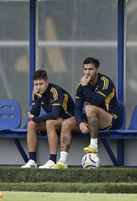 Ayrton Costa y Ander Herrera - Entrenamiento de Boca Juniors - Centro de Entrenamiento de Boca Juniors en Ezeiza - 20 de marzo de 2026 -...