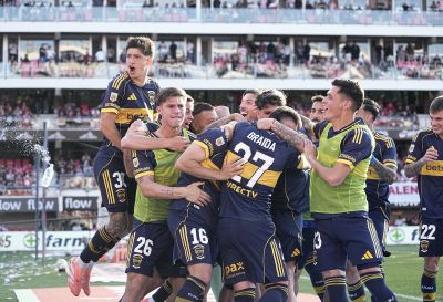 Festejo de Boca Juniors - Estudiantes LP vs Boca Juniors - Torneo Clausura 2025 - Segunda Fase - Fecha 14 de 16 - 2 de noviembre de 2025...