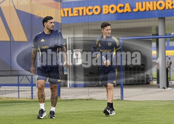 Leandro Paredes y Ander Herrera - Entrenamiento vespertino de Boca Juniors - Centro de Entrenamiento de Boca Juniors en Ezeiza - Pre temporada 2026 - Dia 9 - 10 de enero de 2026 - Foto: Javier Garcia Martino - Prensa CABJ - JAVIER GARCIA MARTINO garcia martino javier
