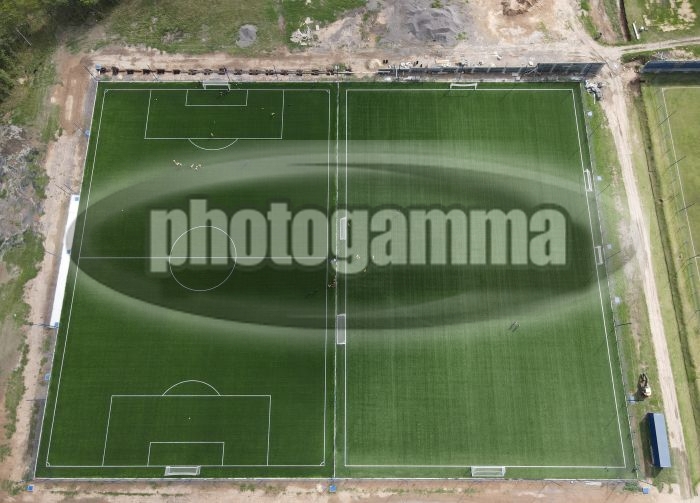 Vista aérea del entrenamiento en pasto sintético - Entrenamiento de Boca Juniors - Centro de Entrenamiento de Boca Juniors en Ezeiza - 5 de abril de 2026 - Foto: Javier Garcia Martino - Prensa CABJ -