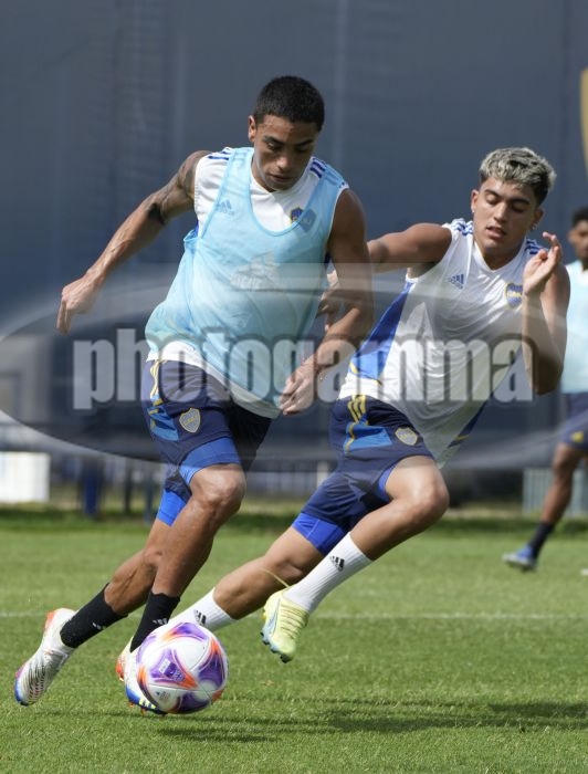 Luca Langoni y Exequiel Zeballos - Entrenamiento de Boca juniors - 28 de enero de 2023 - Centro de Entrenamiento de Boca Juniors en Ezeiza - Foto: Javier Garcia Martino - Prensa CABJ