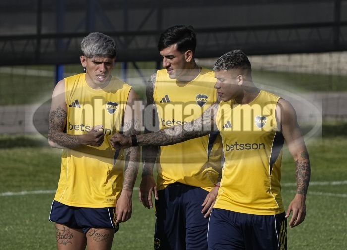Carlos Palacios, Lautaro Di Lollo y Ayrton Costa - Entrenamiento vespertino de Boca Juniors - 19 de noviembre de 2025 - Centro de Entrenamiento de Boca Juniors en Ezeiza - Foto: Javier Garcia Martino - Prensa CABJ -