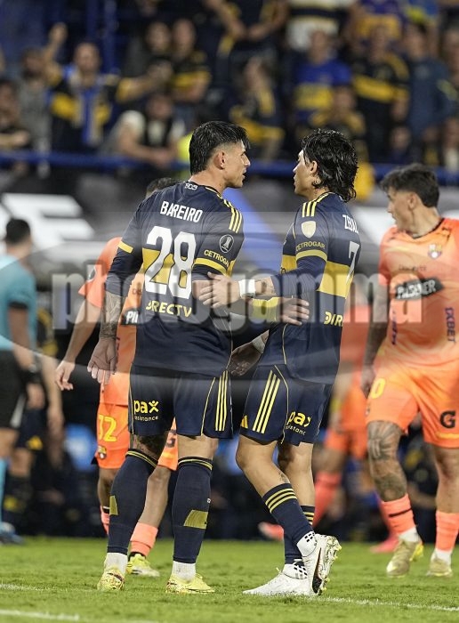Adam Bareiro y Exequiel Zeballos - Boca Juniors vs Barcelona SC - Copa Libertadores 2026 - Fase de Grupos - 14 de abril de 2026 - Estadio Alberto J. Armando - La Bombonera - Foto: Javier Garcia Martino - Prensa CABJ