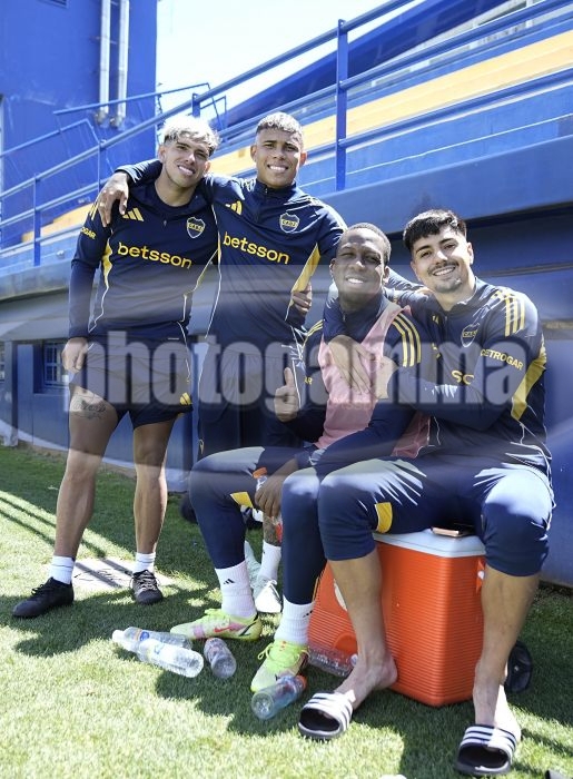 Carlos Palacios, Ayrton Costa, Luis Advincula y Williams Alarcon - Entrenamiento de Boca Juniors - Complejo Pedro Pompilio - Casa Amarilla - 22 de noviembre de 2025 - Foto: Javier Garcia Martino - Prensa CABJ - JAVIER GARCIA MARTINO garcia martino javier