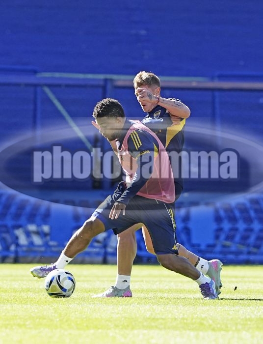 Frank Fabra y Juan Barinaga - Entrenamiento de Boca Juniors - 24 de septiembre de 2025 - Estadio Alberto J. Armando - La Bombonera - Foto: Javier GarcĂ­a Martino - Prensa CABJ -
