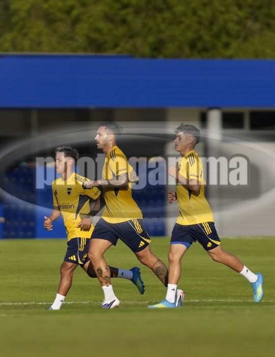 Milton Delgado, Leandro Paredes y Tomas Aranda - Entrenamiento vespertino de Boca Juniors - Centro de Entrenamiento de Boca Juniors en Ezeiza - 10 de abril de 2026 - Foto: Javier Garcia Martino - Prensa CABJ -