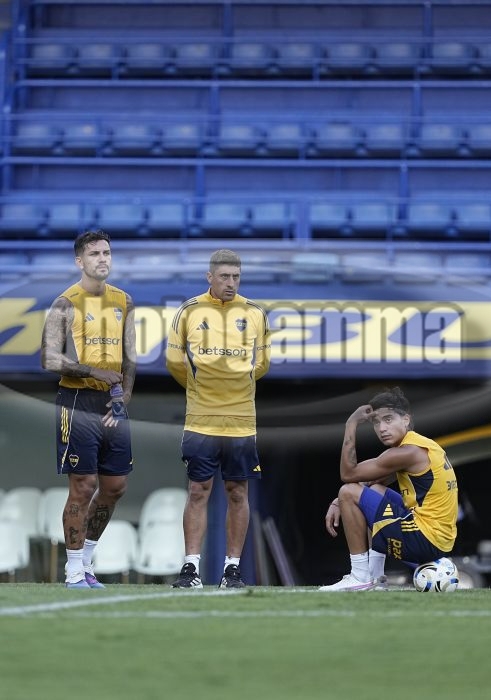 Leandro Paredes, Miguel Merentiel y Exequiel Zebalos -Entrenamiento de Boca Juniors - 22 de enero de 2026 - Estadio Alberto J. Armando - La Bombonera - Foto: Javier Garcia Martino - Prensa CABJ - JAVIER GARCIA MARTINO garcia martino javier