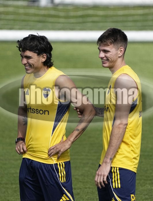 Exequiel Zeballos y Kevin Zenon - Entrenamiento de Boca Juniors - 28 de noviembre de 2025 - Centro de Entrenamiento de Boca Juniors en Ezeiza - Foto: Javier Garcia Martino - Prensa CABJ -