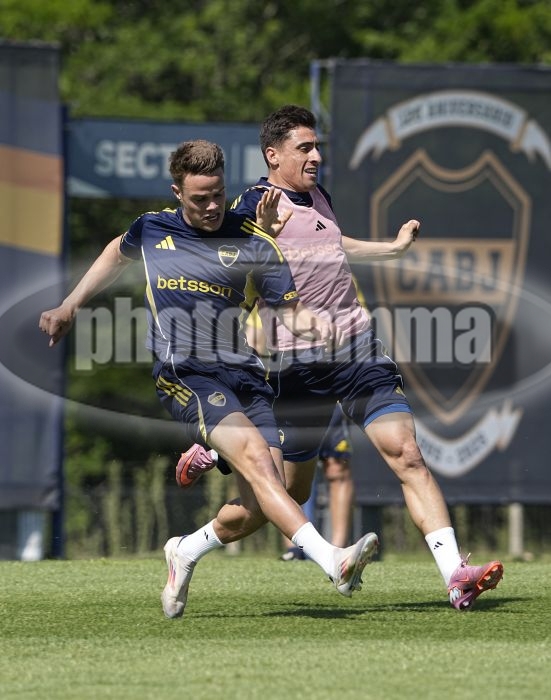 Ignacio Miramon y Miguel Merentiel - Entrenamiento de Boca Juniors - 26 de noviembre de 2025 - Centro de Entrenamiento de Boca Juniors en Ezeiza - Foto: Javier Garcia Martino - Prensa CABJ -