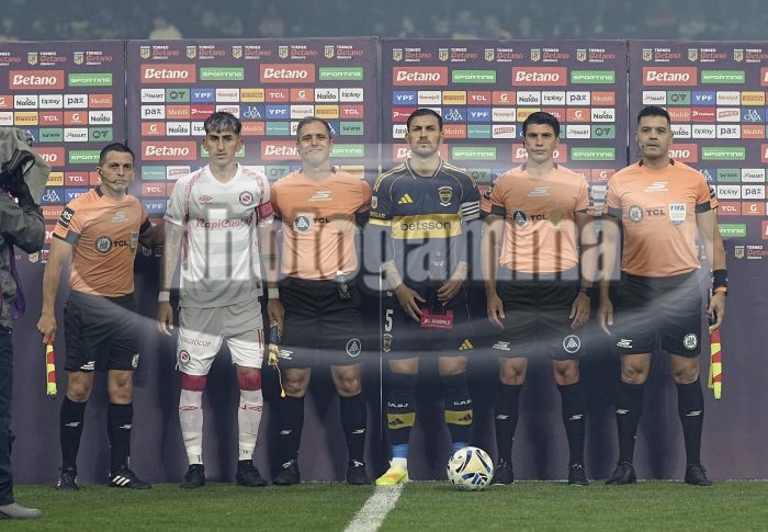 Leandro Paredes con arbitros - Boca Juniors vs Argentinos Jrs - Torneo Clausura 2025 - Cuartos de final - 30 de noviembre de 2025 - Estadio Alberto J. Armando - La Bombonera - Foto: Javier GarcĂ­a Martino - Prensa CABJ -
