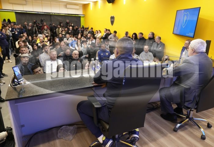 Juan Roman Riquelme junto al Pie de Boca Juniors, Jorge Amor Ameal, anuncia su partido homenaje - 14 de junio de 2023 - Estadio: Alberto J. Armando - La Bombonera - Foto: Javier Garcia Martino - Prensa CABJ javier garcia martino photogamma