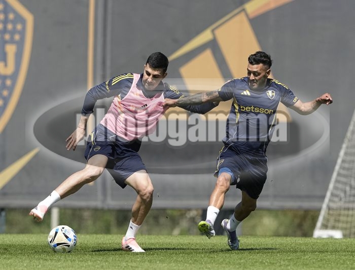 Rodrigo Battaglia y Lucas Janson - Entrenamiento de Boca Juniors - Centro de Entrenamiento de Boca Juniors en Ezeiza - 1 de octubre de 2025 - Foto: Javier Garcia Martino - Prensa CABJ - javier garcia martino @javierphotogamma