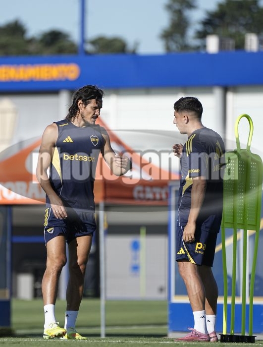 Edinson Cavani y Miguel Merentiel - Entrenamiento de Boca Juniors - Centro de Entrenamiento de Boca Juniors en Ezeiza - 6 de febrero de 2026 - Foto: Javier Garcia Martino - Prensa CABJ -