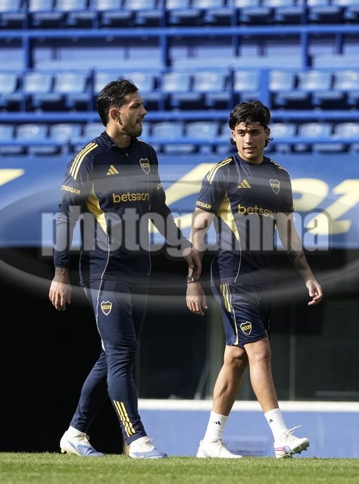 Leandro Paredes y Exequiel Zeballos - Entrenamiento de Boca Juniors - 6 de noviembre de 2025 - Estadio Alberto J. Armando - La Bombonera - Foto: Javier GarcĂ­a Martino - Prensa CABJ - JAVIER GARCIA MARTINO garcia martino javier