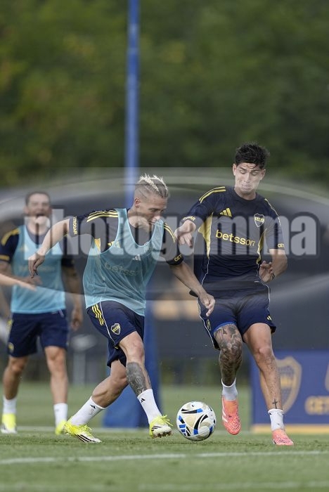 Santiago Ascacibar y Tomas Belmonte - Entrenamiento de Boca Juniors - Centro de Entrenamiento de Boca Juniors en Ezeiza - 18 de febrero de 2026 - Foto: Javier Garcia Martino - Prensa CABJ -